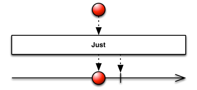 우선 Just는 위의 마블다이어그램처럼 데이터를 바로 방출할때 사용합니다. Create처럼 onNext()를 호출 할 필요없이 Just()로 데이터만 넘겨주면 됩니다.